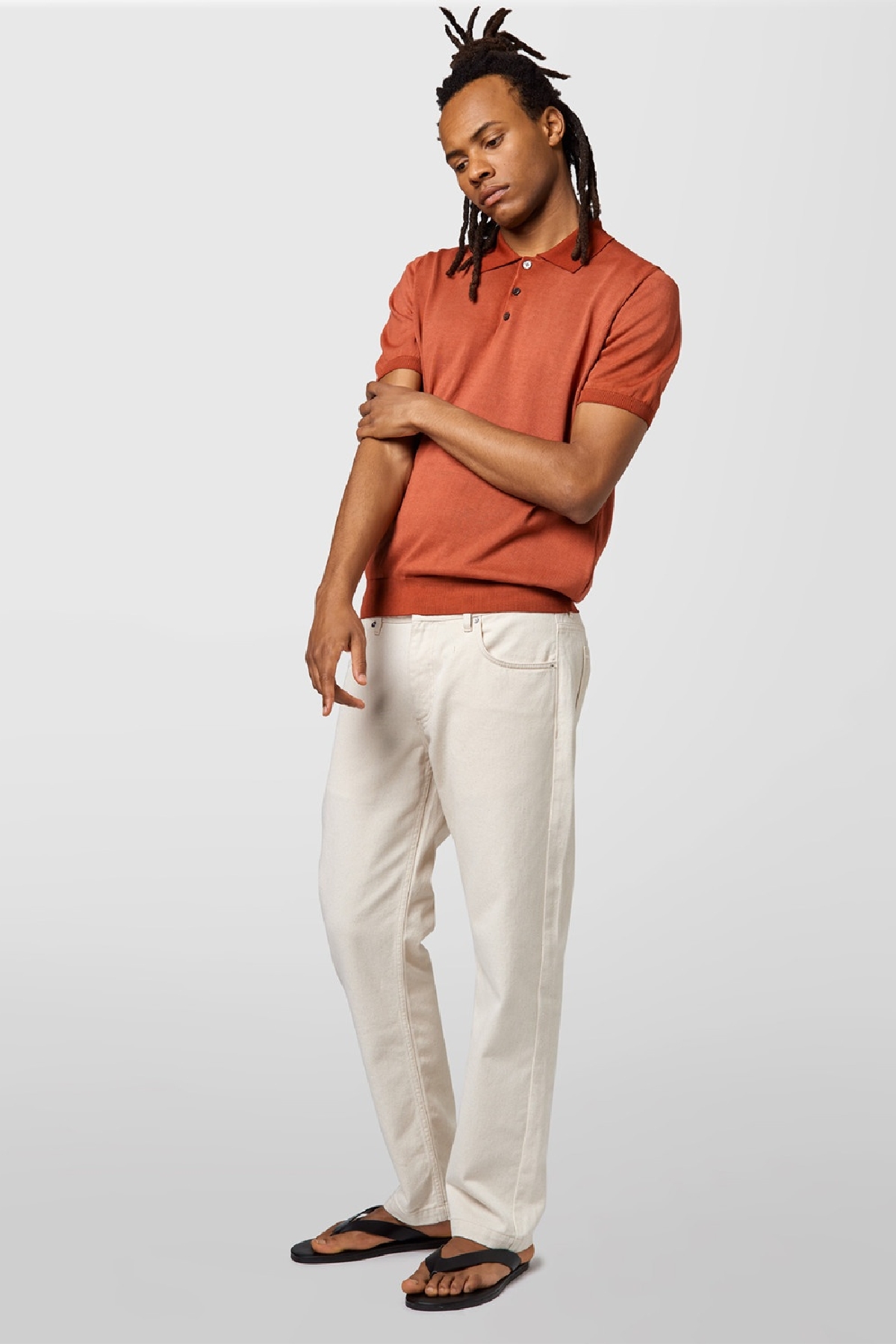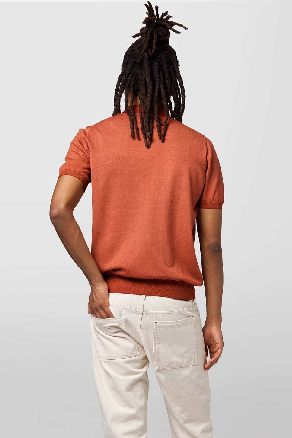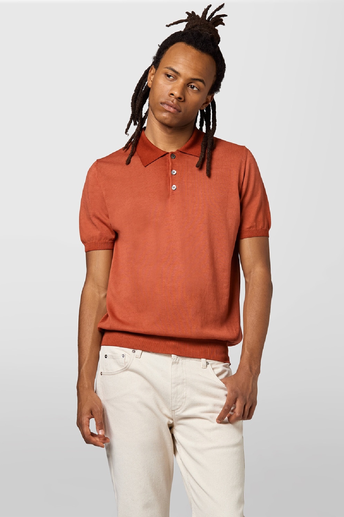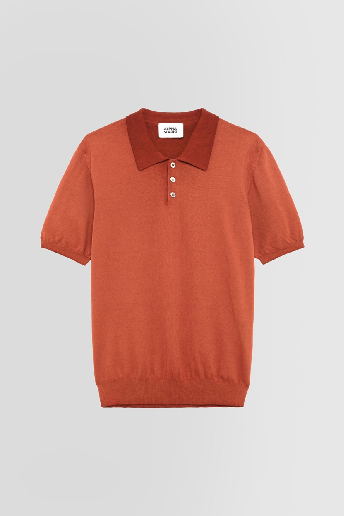 Short-sleeved polo shirt in pure cold-dyed cotton yarn. Composition: 100% cotton