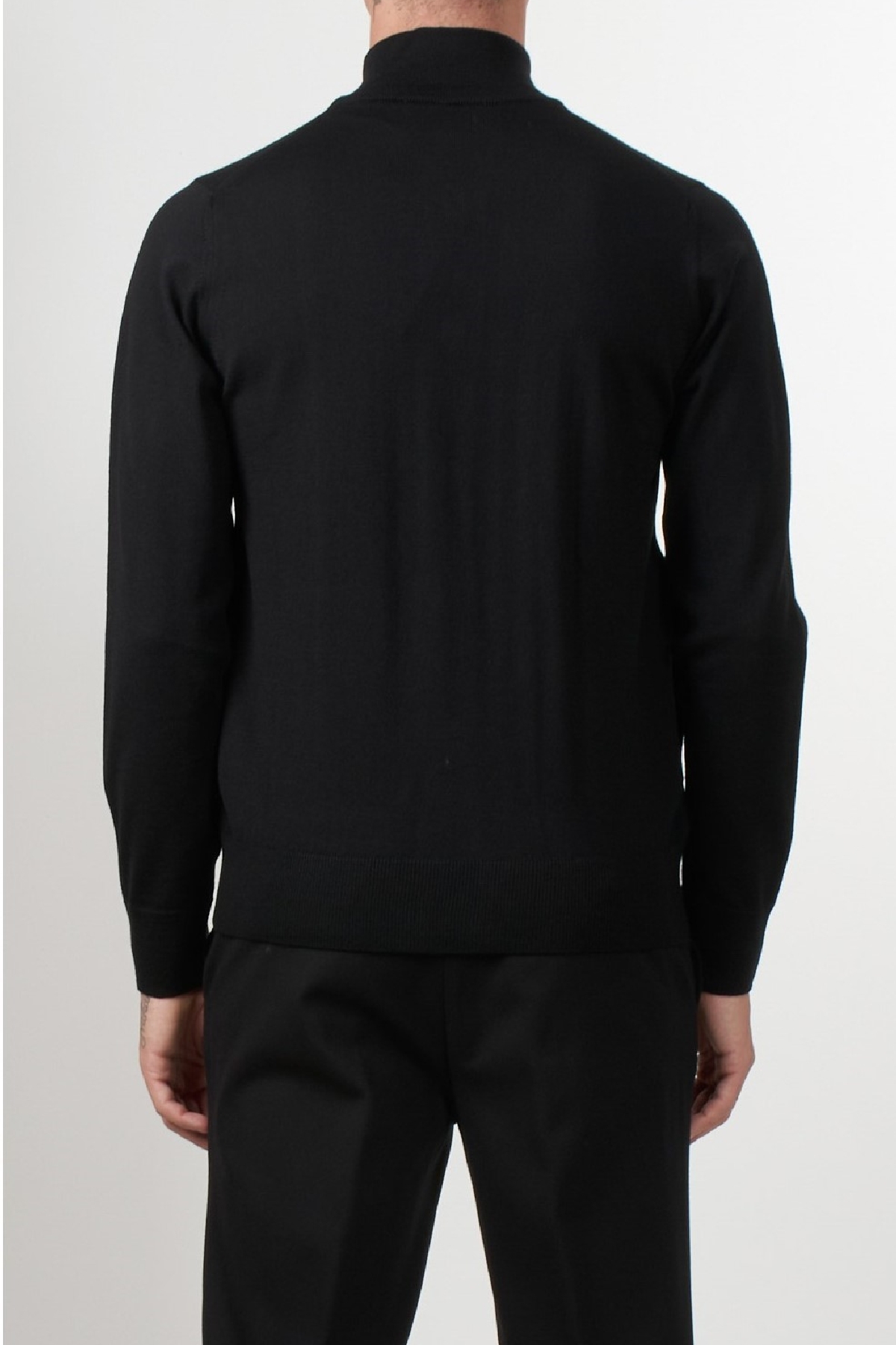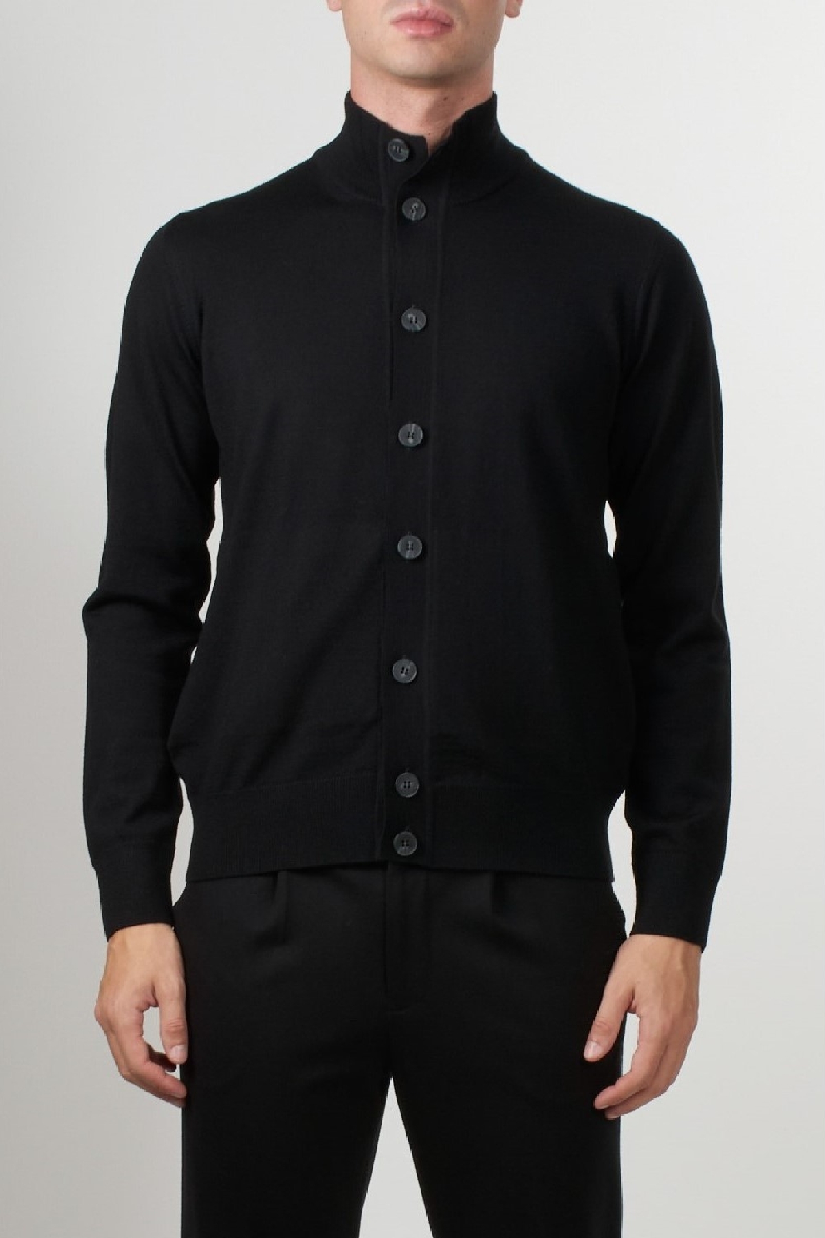 Merino wool half-collar cardigan. Button closure. Side welt pockets. Long sleeves. Ribbed collar, hem, and cuffs. Regular fit. Composition: 100% merino wool.