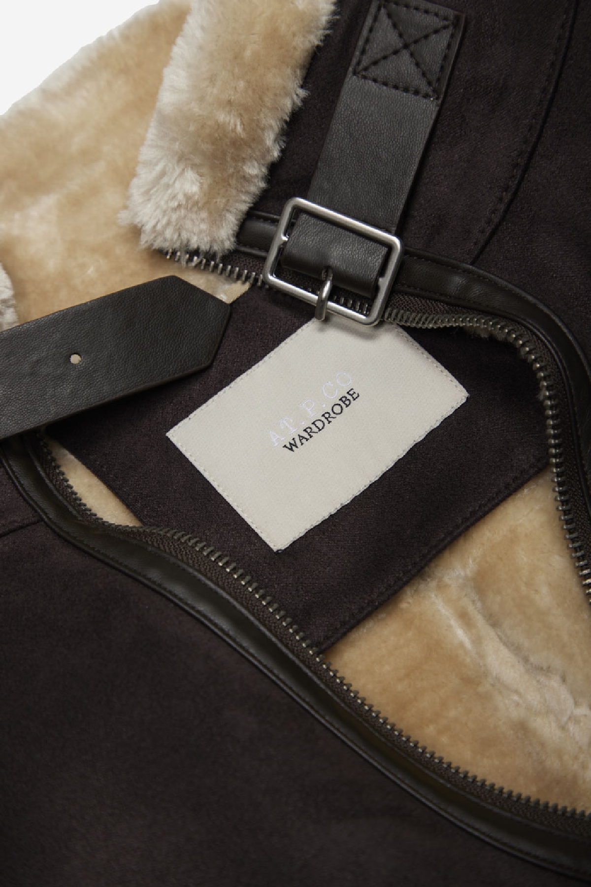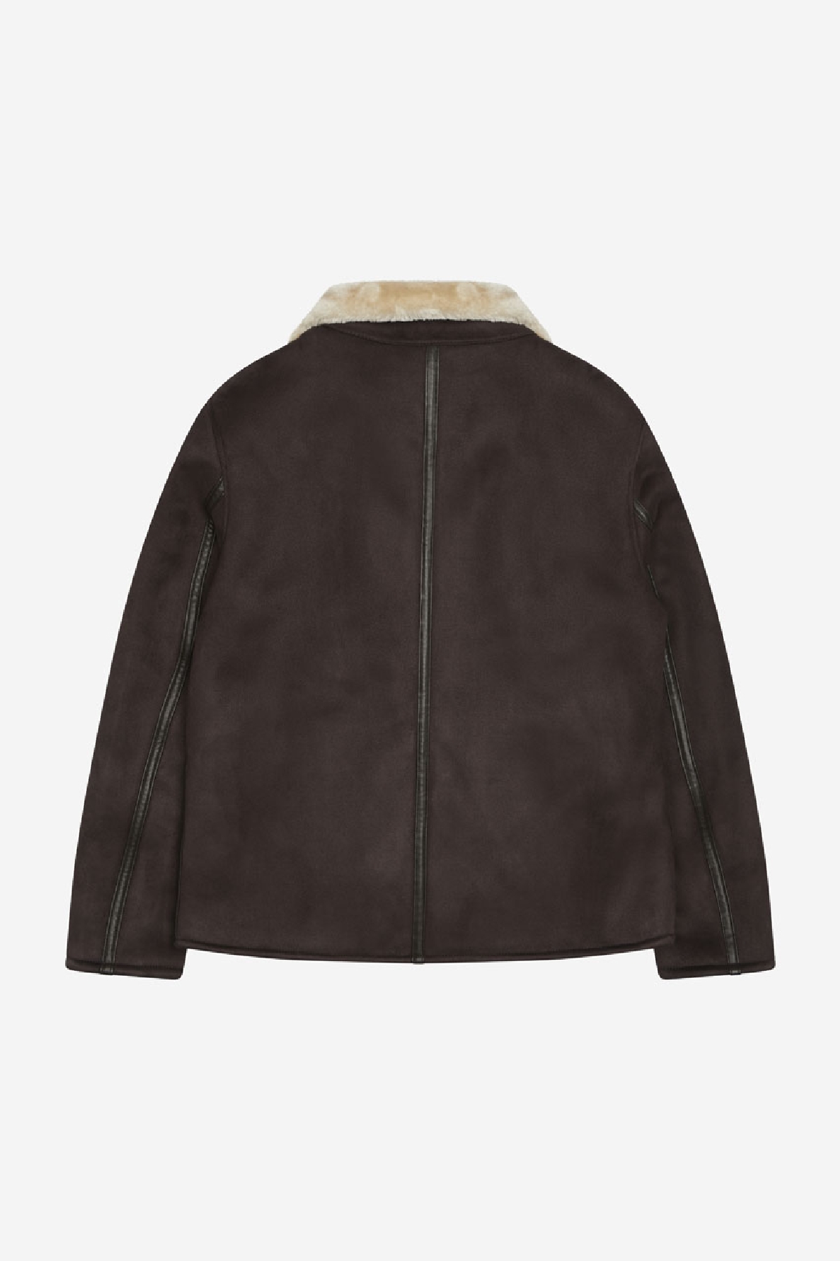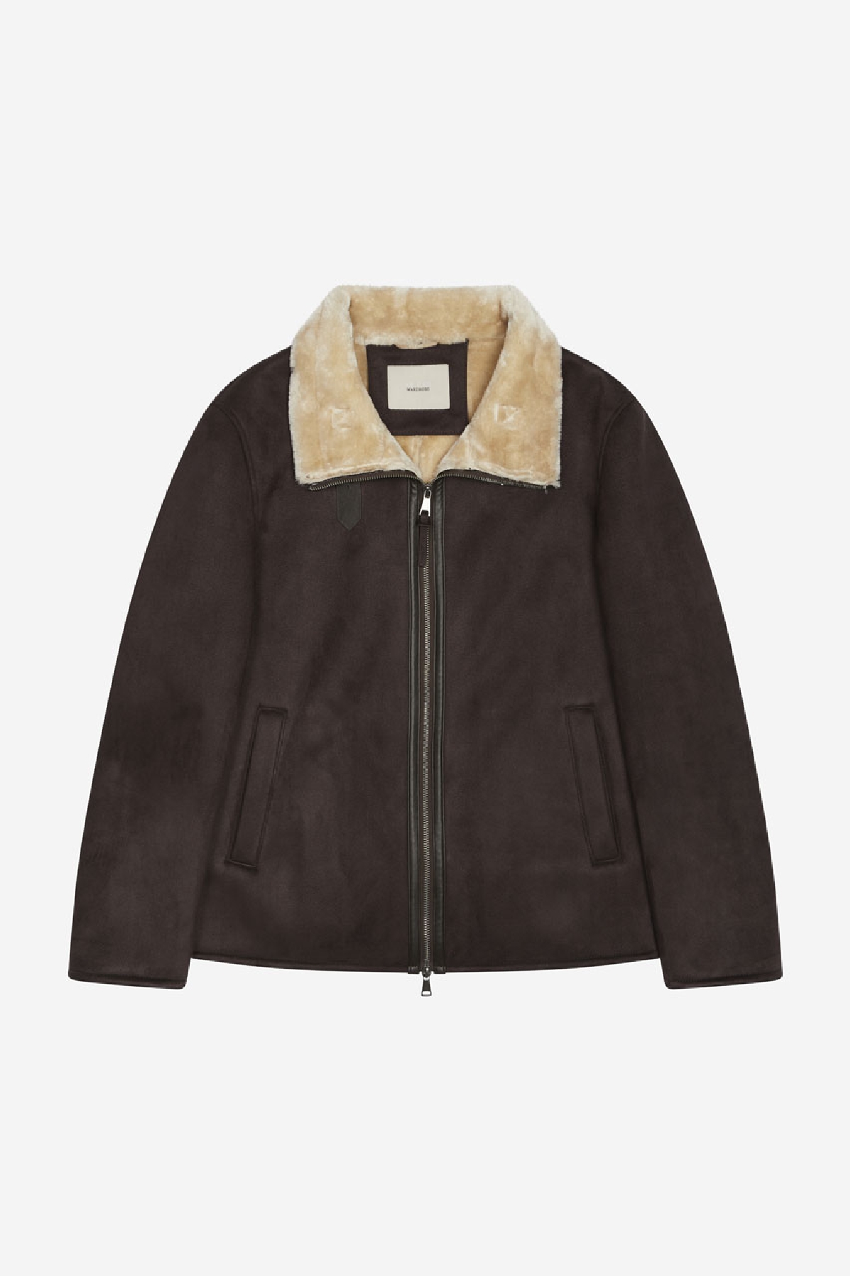 Faux sheepskin jacket with suede-effect finish and beige faux fur contrast, double-slider zip closure. Welt pockets on the sides. Composition: 79% pl 18% vi 4% ea