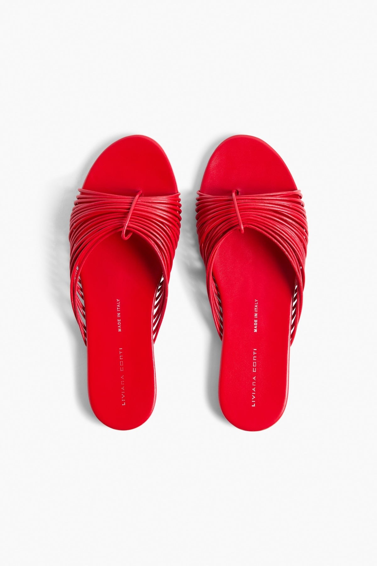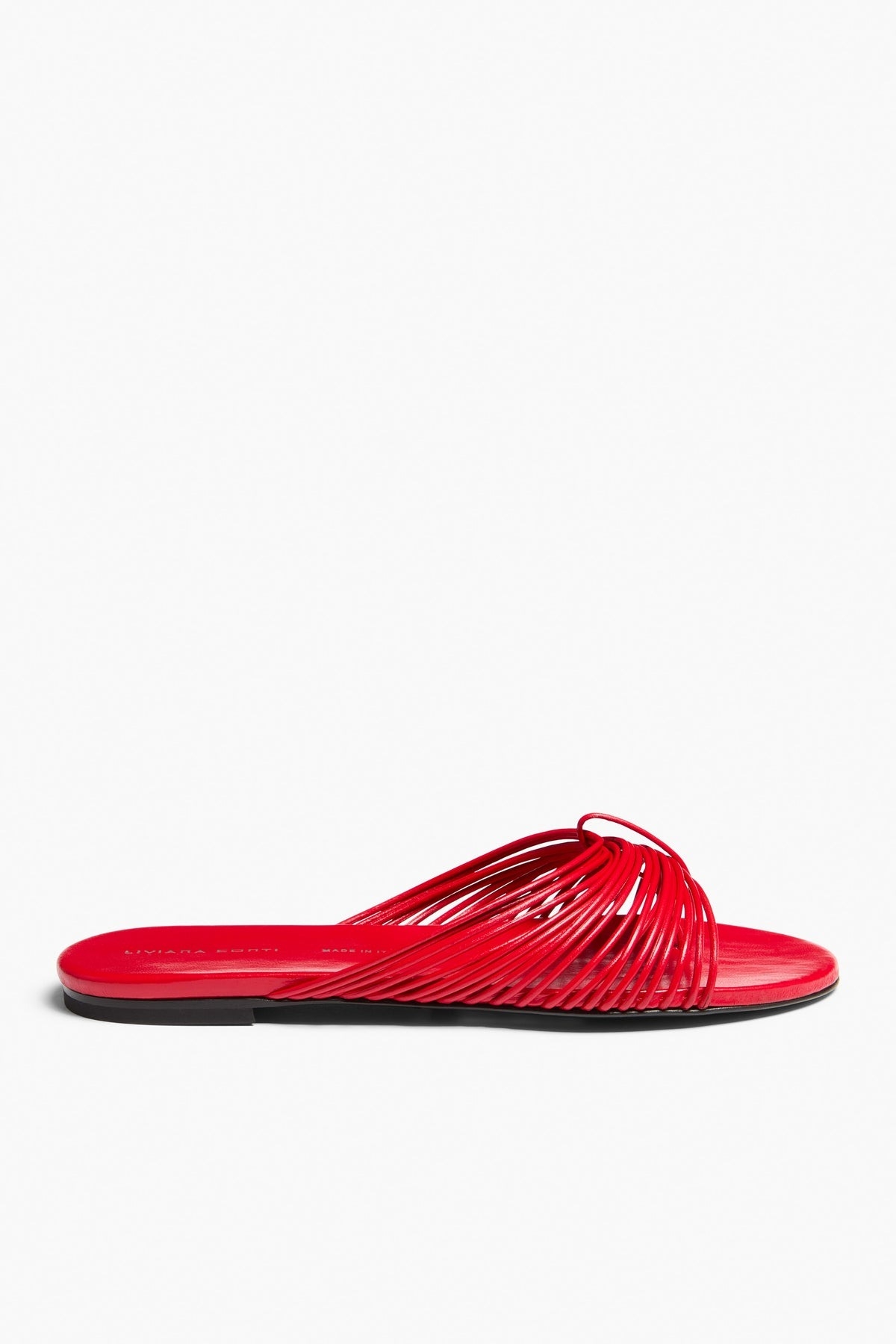 Open flat mules with nappa leather tubing and leather sole. Composition: 100% leather