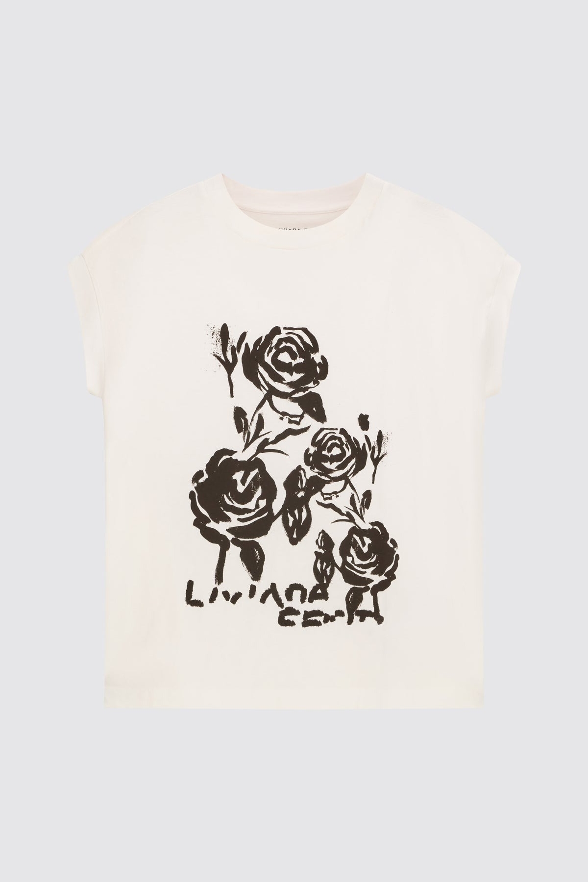 - Short-sleeved t-shirt with cuffs, round neck, rose print and logo. Straight fit. Composition: 100% cotton