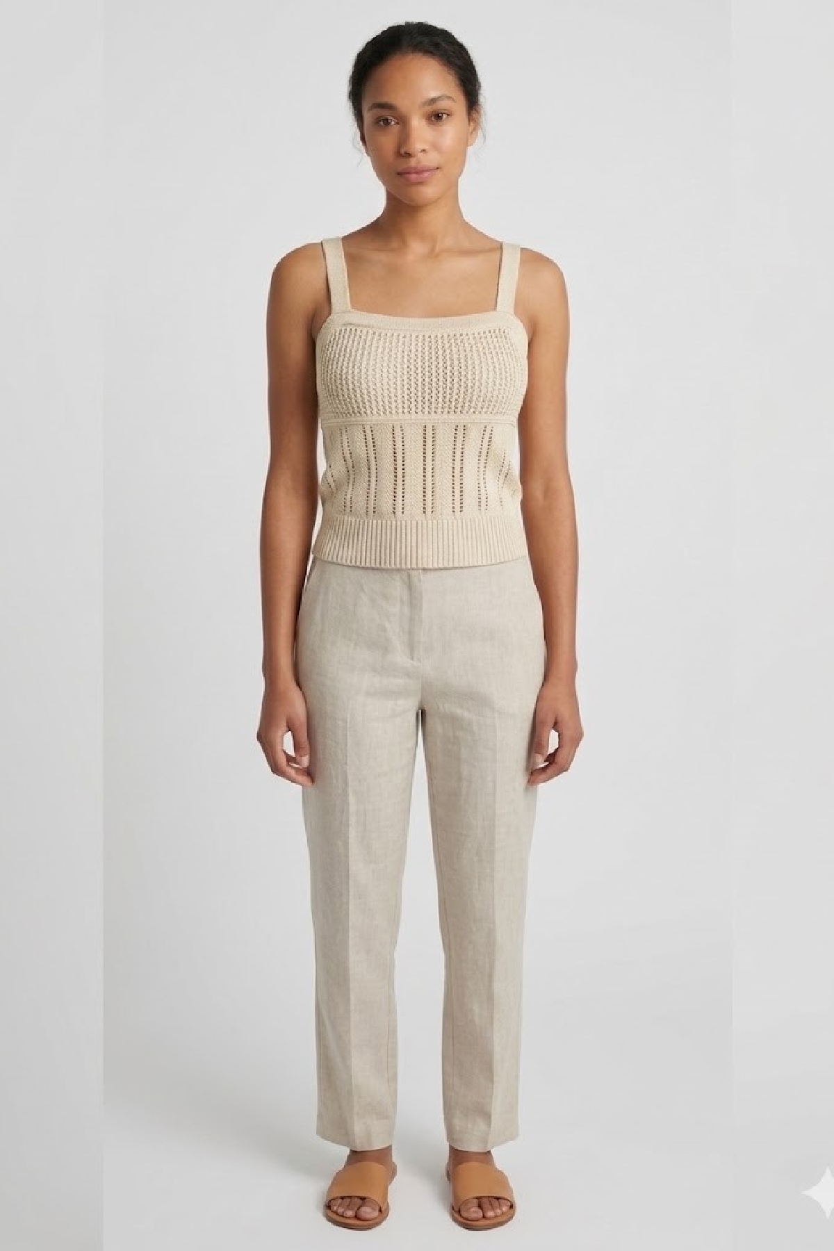 Embroidered thread top with square neckline. Composition: 92% cotton 8% polyester.