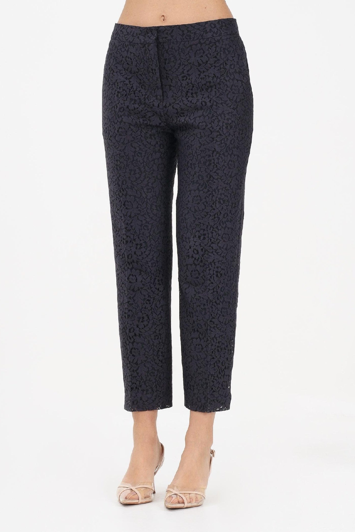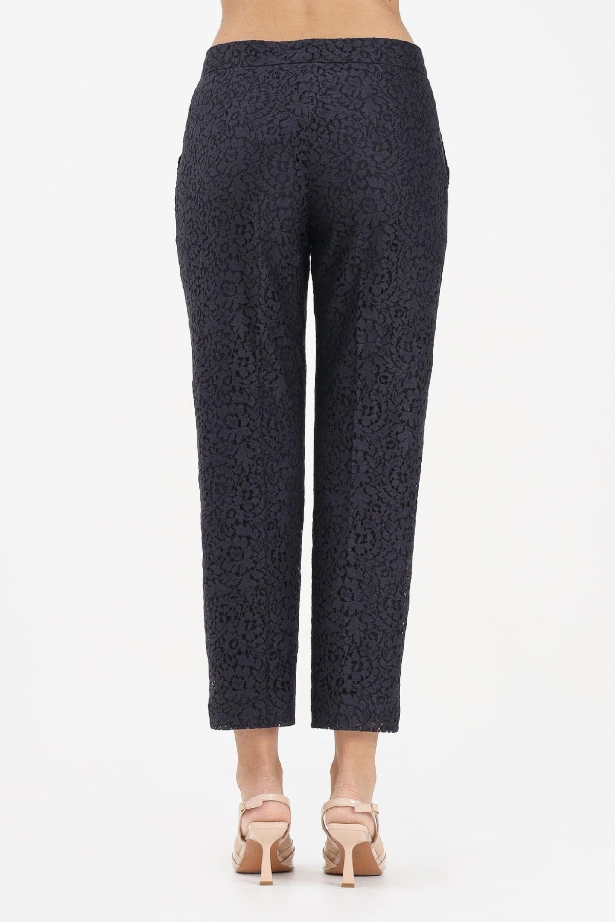 Trousers made of refined floral lace. Straight-cut, ankle-length. The clean cut and regular waist provide a comfortable fit, complemented by inset side pockets that combine practicality and style. The closure is discreet and well-integrated into the design. Composition: 80% cotton, 20% polyamide