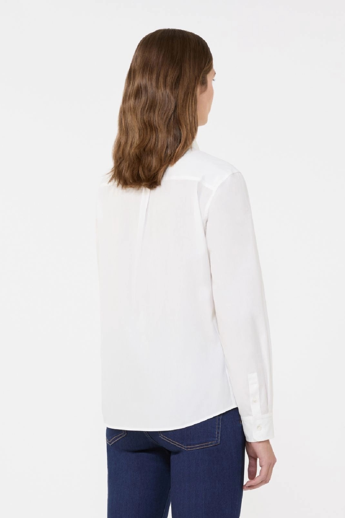 Classic shirt with a small embroidered butterfly logo on the front hem, worn left side. Straight fit. Patch pocket. Back yoke and center pleat. Composition: 100% organic cotton.