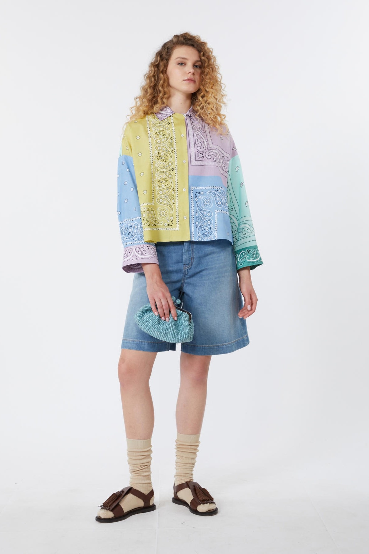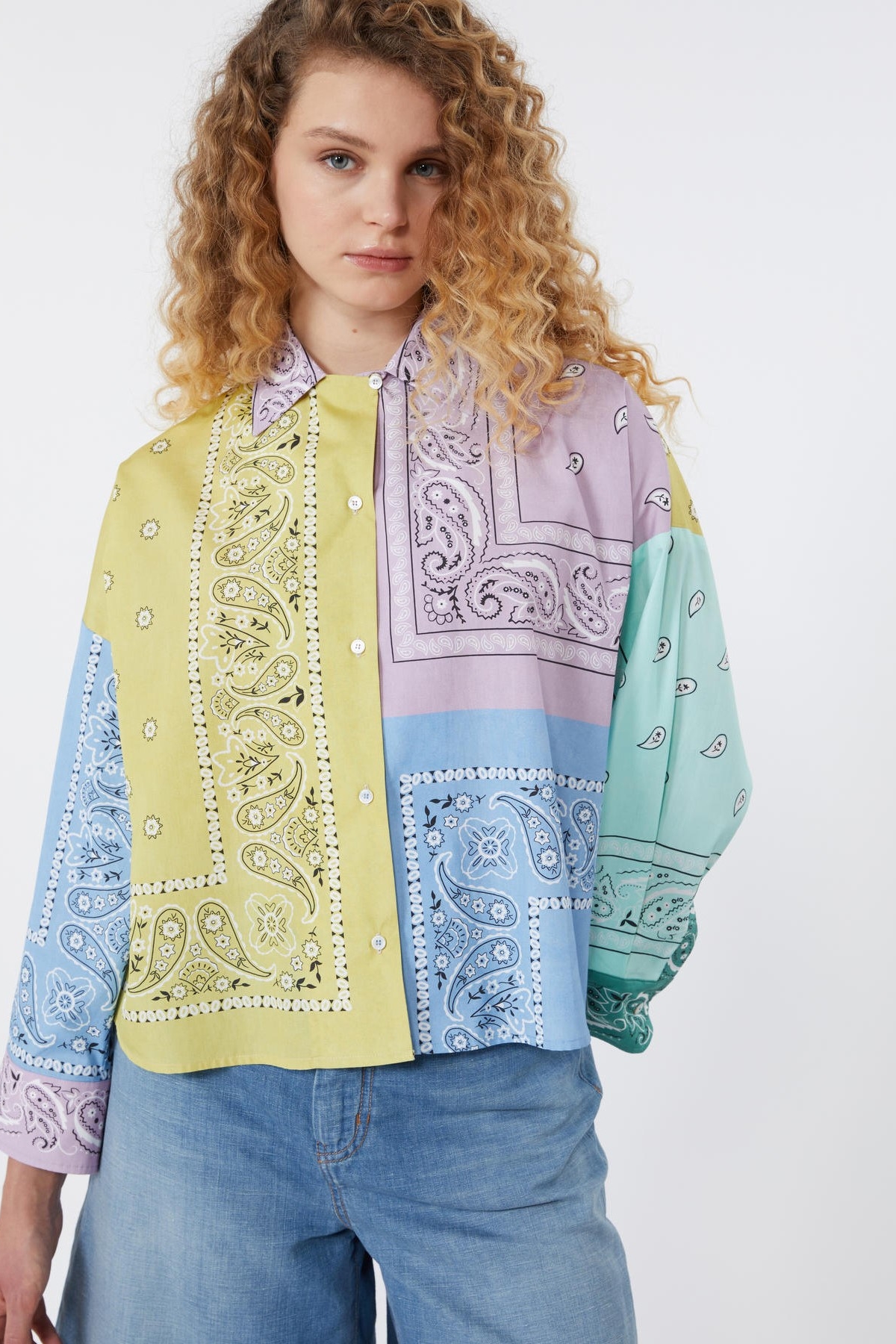 Pure cotton poplin shirt with a classic collar and long, low-cut sleeves. The patchwork bandana print characterizes the piece. Mother-of-pearl button closure. Straight fit. Composition: 100% Cotton