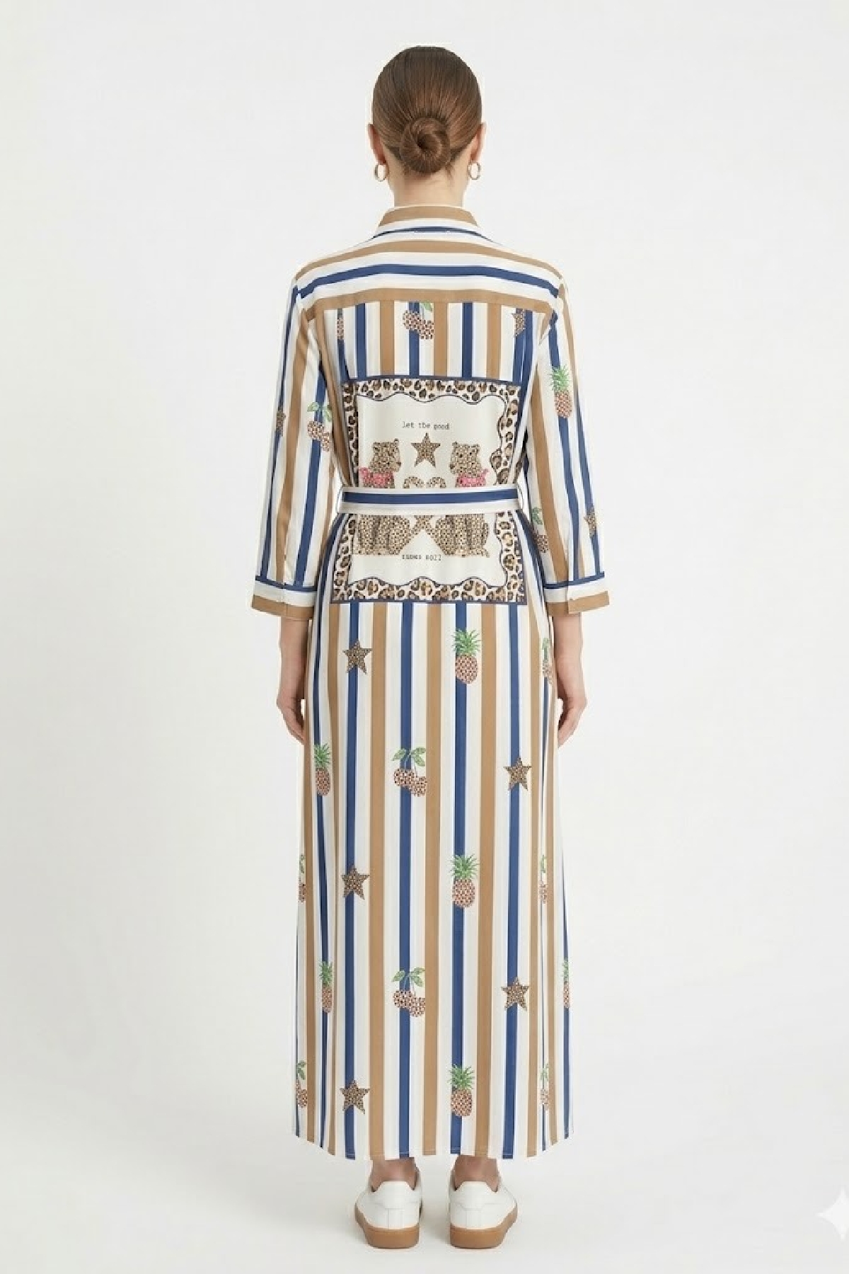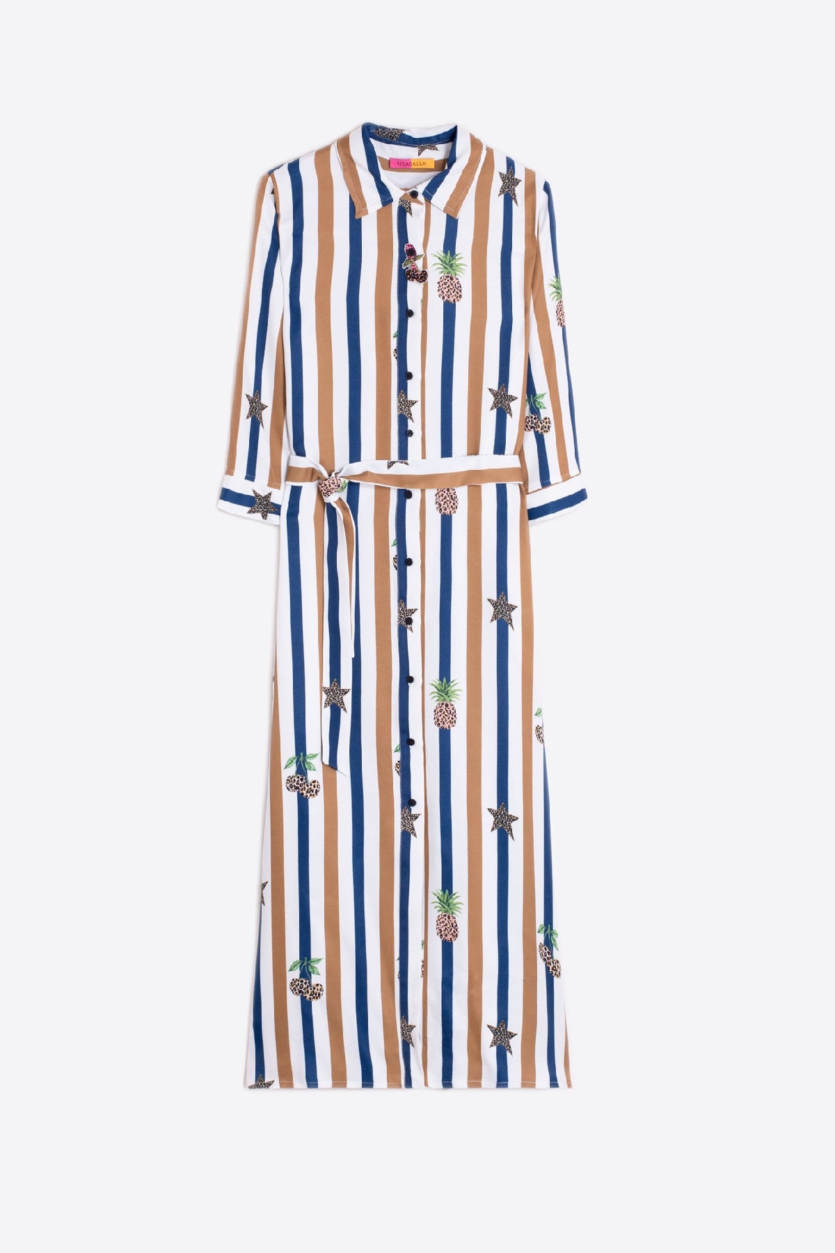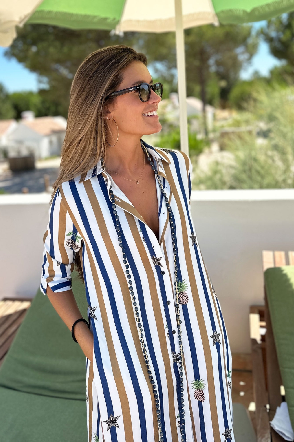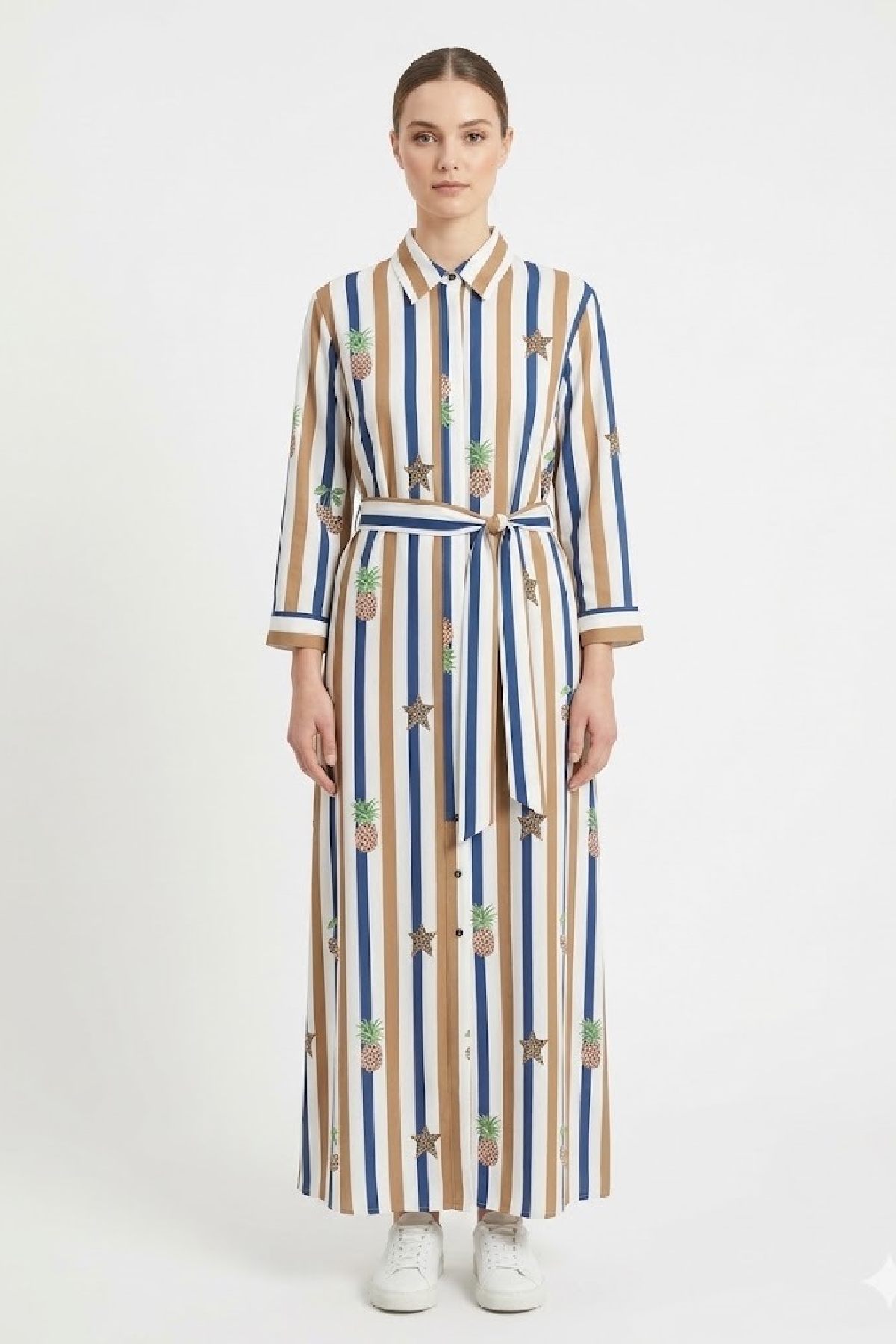 Blue-beige striped shirt dress. Composition: 52% viscose 48% rayon
