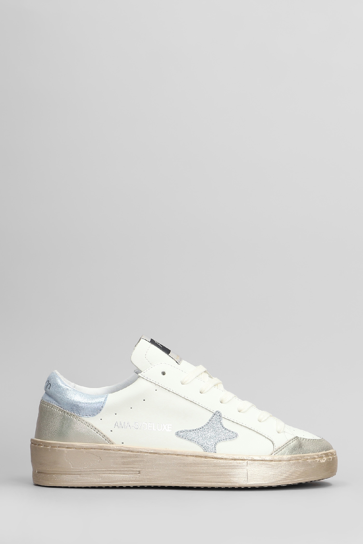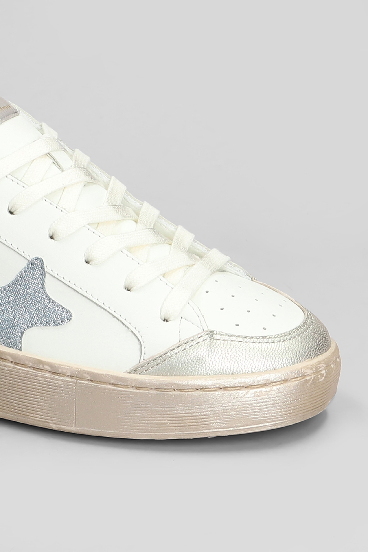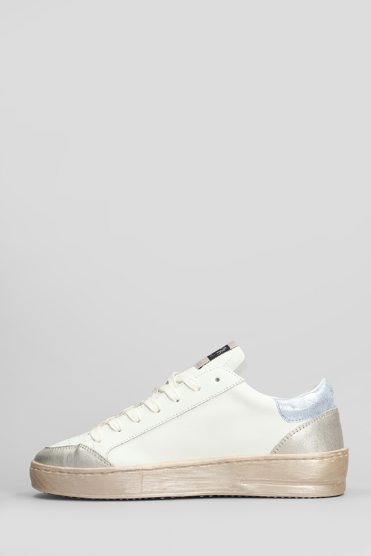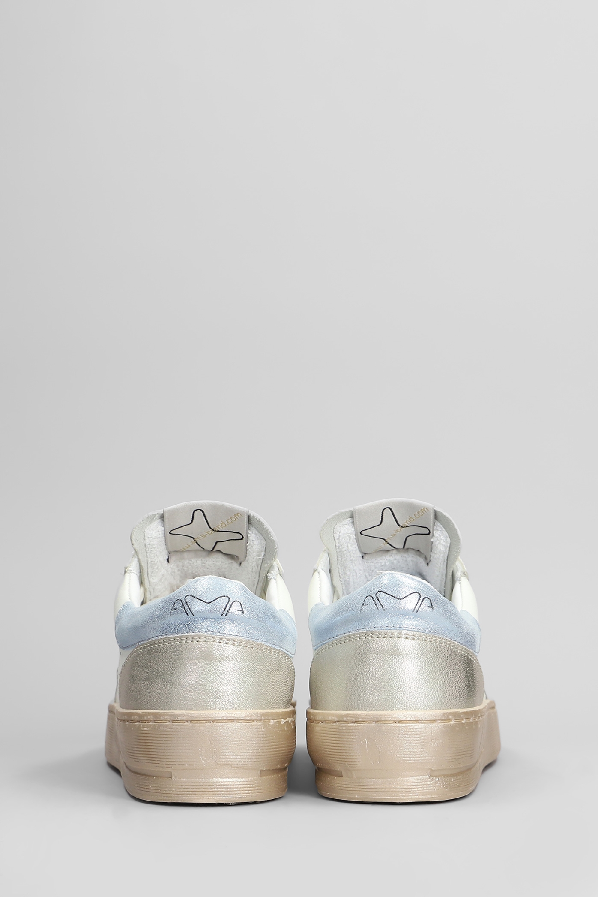 sneakers Slam in pelle bianca effetto used , patch logo e tallone a contrasto dettagli platino composizione 100% pelle
