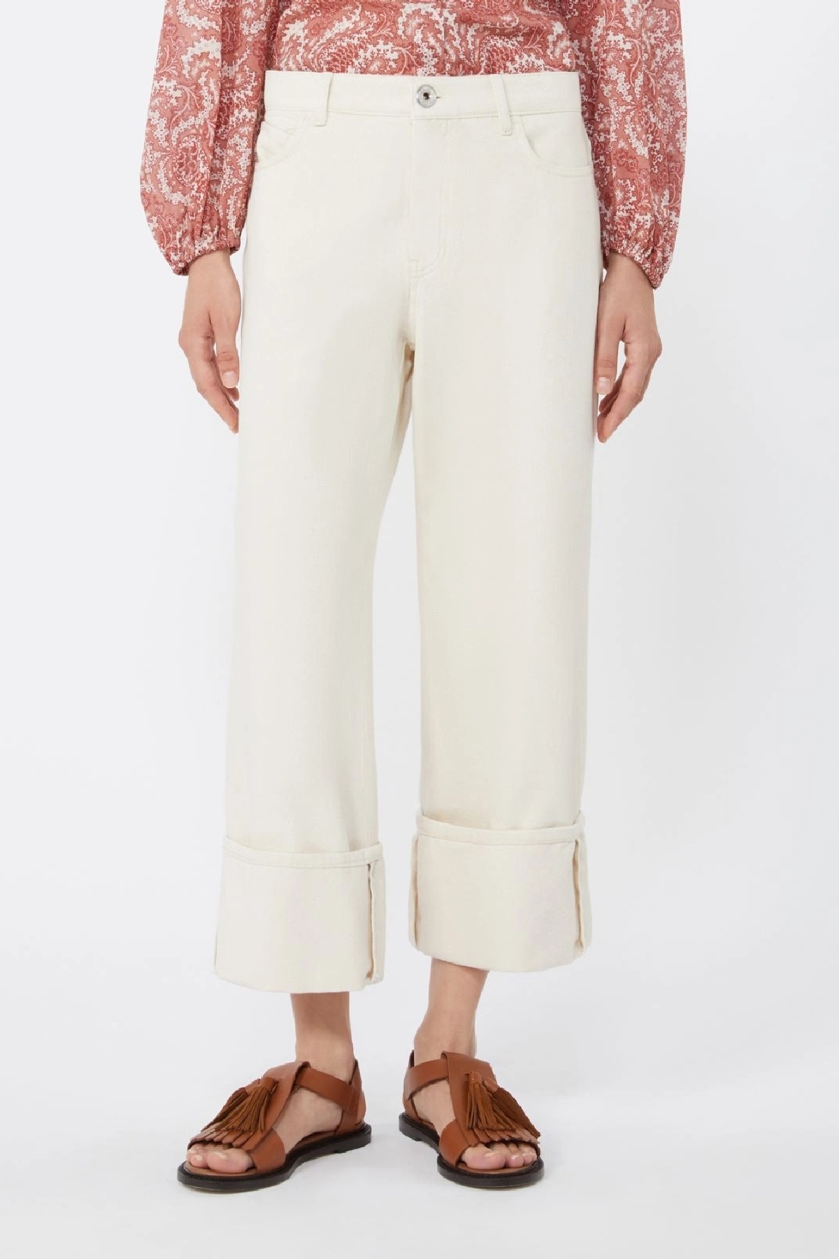 Pantalone 5 tasche con gamba dritta, caratterizzato da risvolto alto al fondo e taglio cropped alla caviglia. Regular Fit. Chiusura con zip coperta e bottone a chiodo. Tasche a toppa sul retro. Passanti per cintura in vita. Label personalizzata in vita sul retro. Composizione:100% cotone