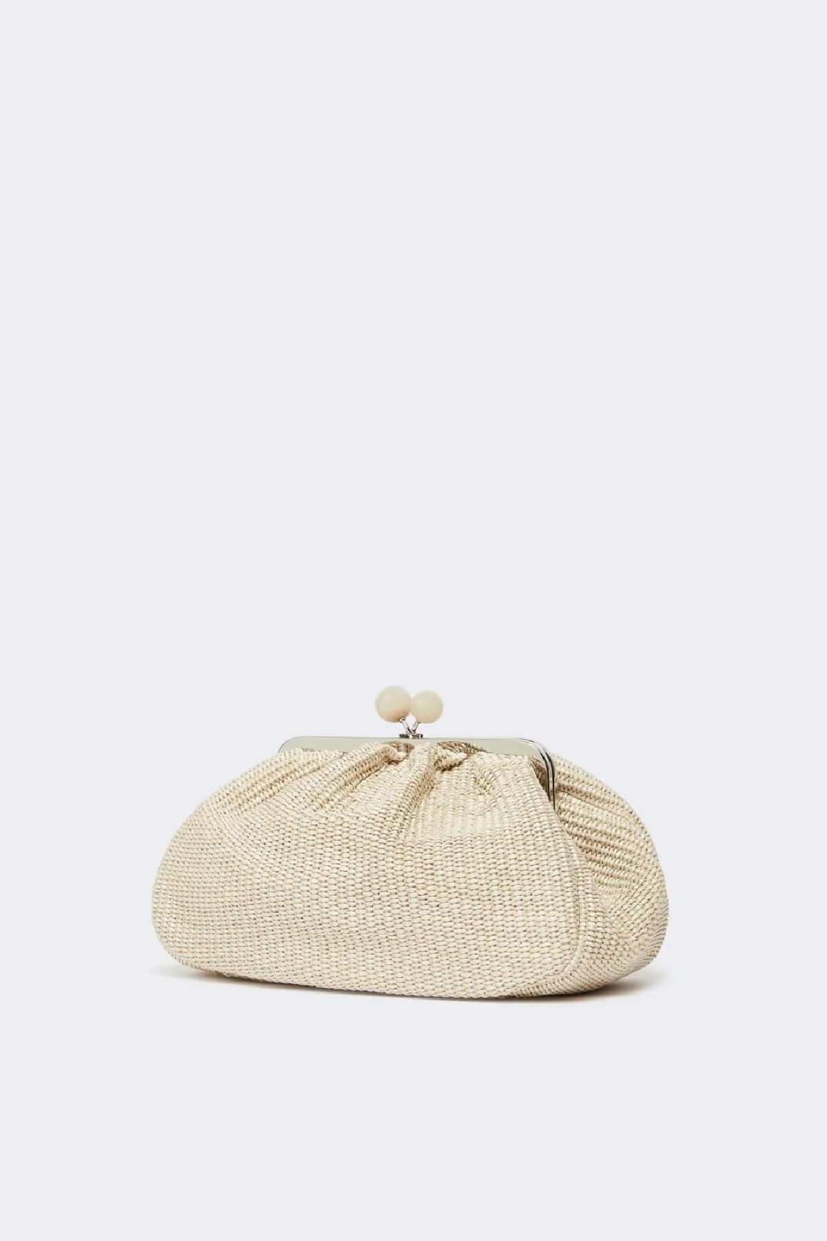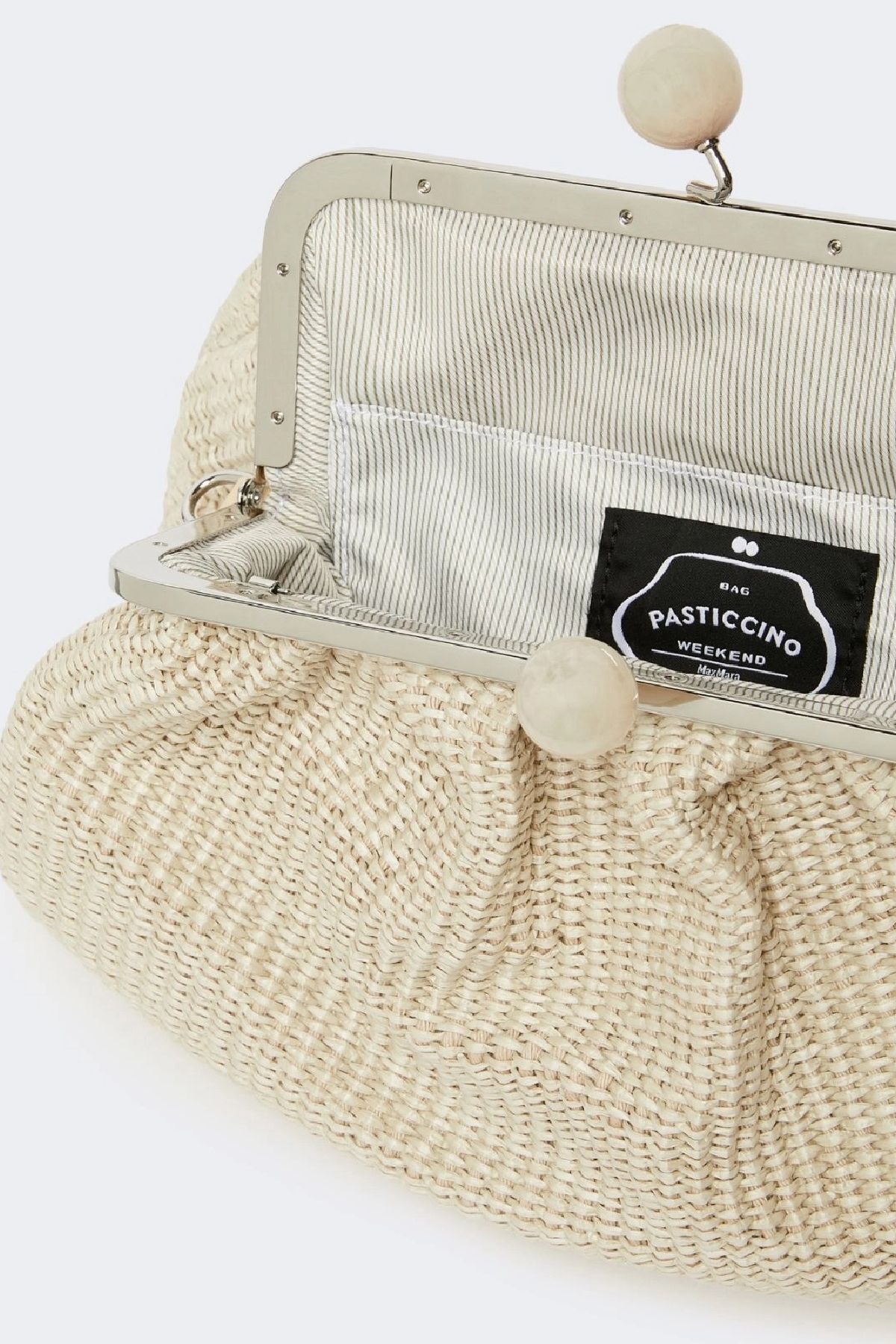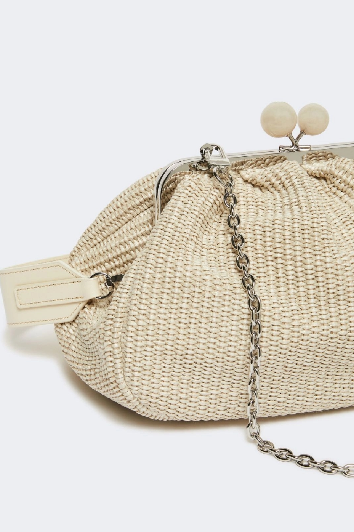 Pasticcino Bag Medium dalla forma destrutturata. Tracolla lunga a catena con spallaccio in pelle e tracolla corta in pelle. Tasca interna portaoggetti con label personalizzata. Doppio attacco per le tracolle, in testa o sui fianchi. Chiusura metallica con sfere personalizzate Weekend Max Mara. Composizione: 52% cotone, 48% poliammide