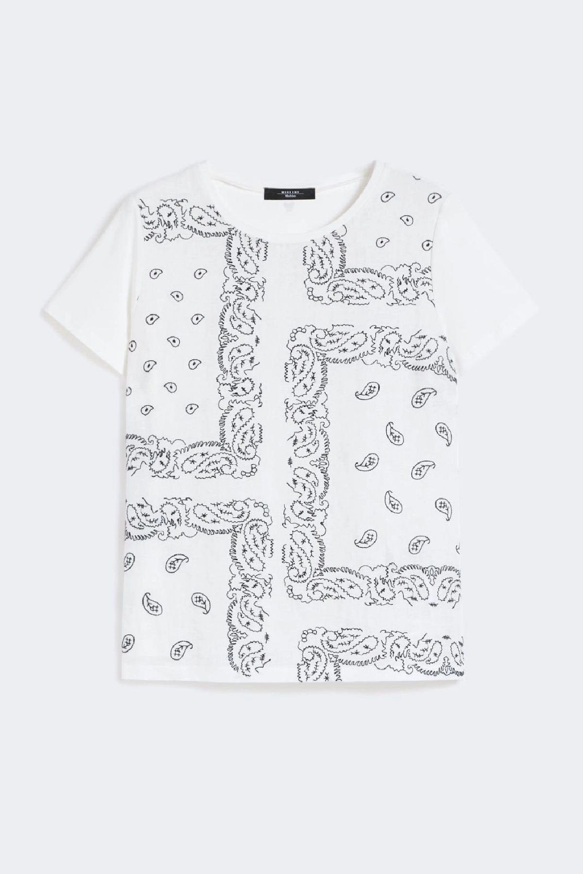 T-shirt dalla linea dritta, caratterizzata da inserto frontale in tela di puro lino ricamata. Vestibilità regular. Cotone stretch Girocollo. Maniche corte a giro. Piccolo logo a farfalla sul retro del collo. Composizione:Tessuto a maglia 94% cotone, 6% elastan; davanti 100% lino