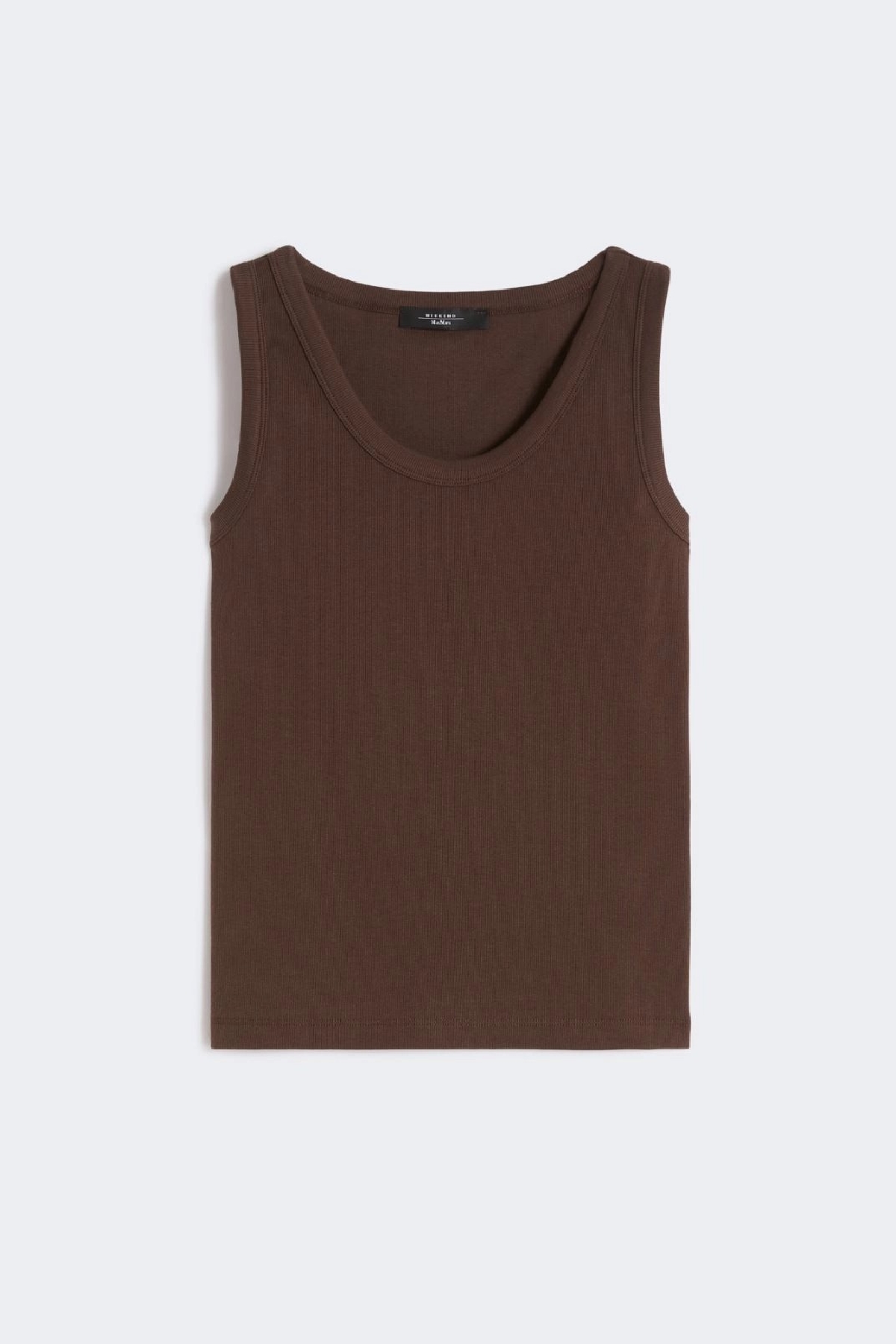Top smanicato lavorato a costine, personalizzato da logo a farfalla sul retro del collo.Composizione:95% cotone, 5% elastan