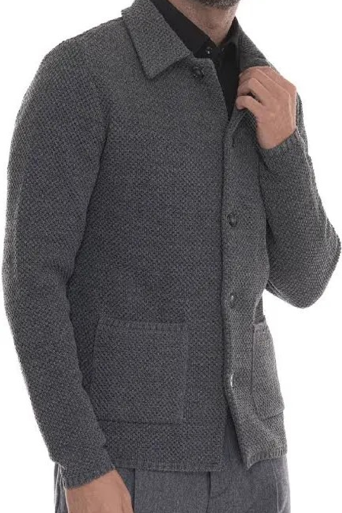 giacca in maglia punto pannocchia. Abbottonatura centrale . tasche anteriori . Composizione:50% lana vergine 50% acrilico